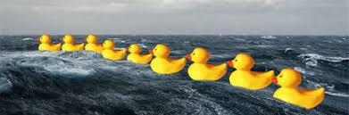 eine kleine rosa Gummiente mit dem Aufdruck „Made in Italy“ im Tang verfängt,